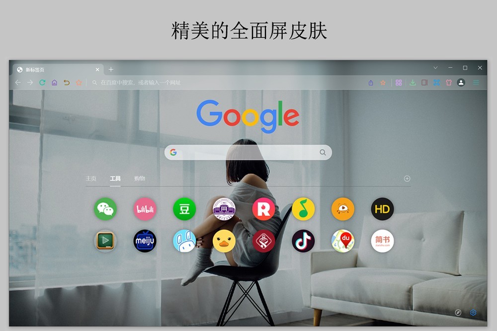 2.个性化自定义:支持全面屏皮肤,多彩颜色皮肤,支持Mac风格,支持更改图标,地址栏,标签等样式,让您完全定义自己专属的浏览器界面;