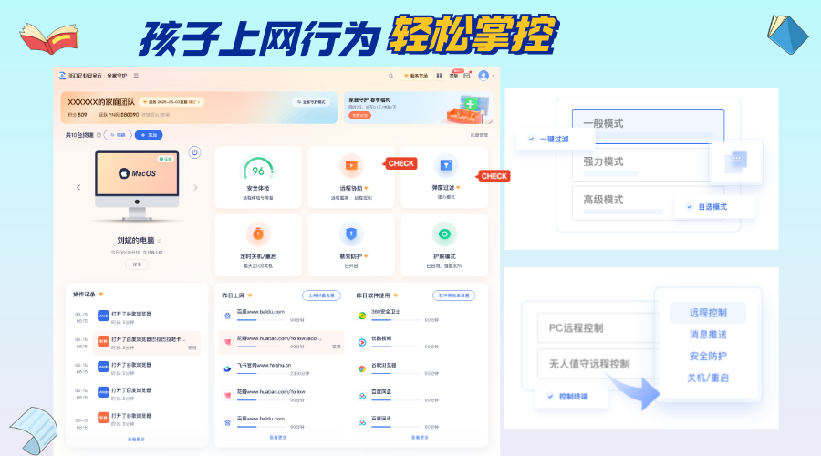 学生居家上网课已经是普遍现象,如何避免孩子上课分心是家长们关注的重点。家长可以使用360企业安全云对孩子电脑进行学习管控,通过上网行为管理及软件管理的黑白名单机制可以管理孩子电脑访问网站及下载软件行为,避免孩子浏览使用与课程无关网站及软件。同时可以有效拦截软件弹窗,避免上课分心。