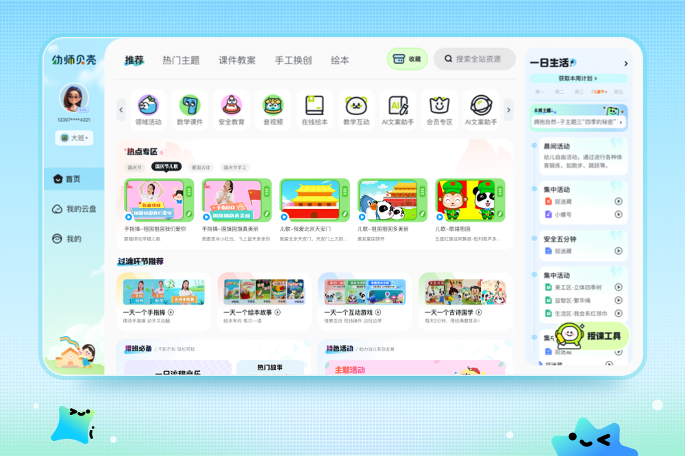 师贝壳是一款以幼儿心理学和《3-6岁儿童学习与发展指南》为理论依据,从兴趣启蒙、主题教学为出发点,针对幼儿年龄、个体差异化等特征,打造出以领域知识为基础,结合能力培养、情景教学、主题任务的多媒体课堂模式和教学资源软件。
