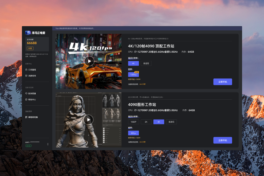 海马云电脑是一款面向用户的体验云端电脑的产品。用户通过下载电脑客户端,在客户端中点击进入云端电脑中,使用 windows 系统的高配置电脑。