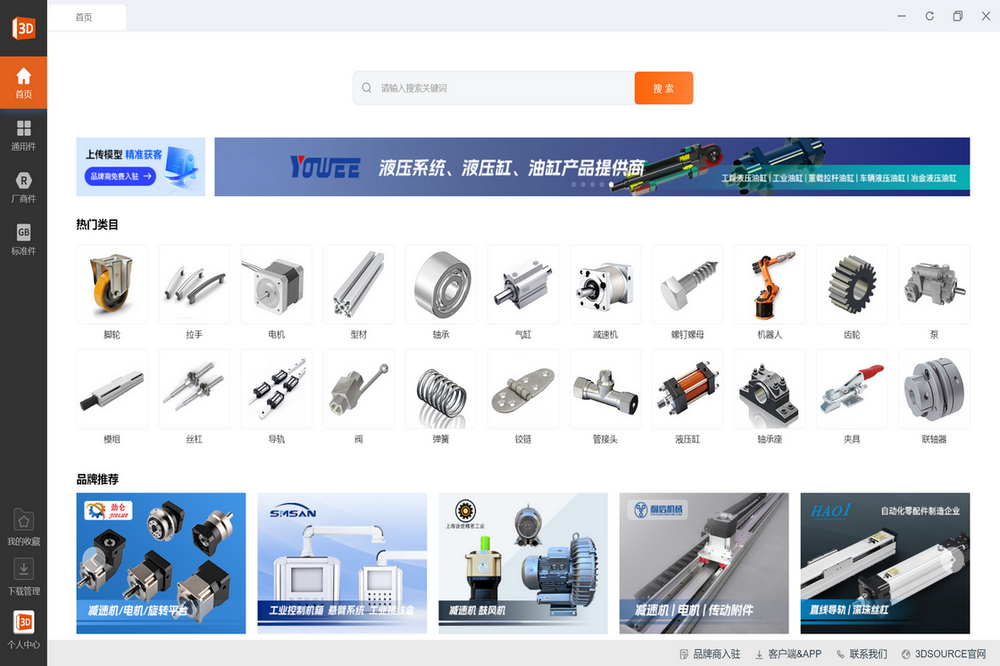 3DSOURCE零件库由上海新迪数字技术有限公司自主研发,是一款完全免费的且支持各大主流CAD软件、标准覆盖齐全、种类丰富的零部件选型软件,也是国内领先的、用户规模非常庞大的3D零部件资源库。提供5000多万种系列的标准件和非标件三维 CAD模型,汇聚上百家品牌生产厂商;集产品搜索、产品展示、产品选型、3D模型下载、采购询盘、一键打开/插入、BOM属性自动写入等多种功能于一体。帮助机械设计工程师提高设计环节标准化、提升设计工作效率、缩短机械产品上市周期。